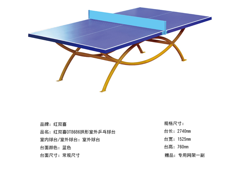 • 红双喜拱形折叠式乒乓球台T2828